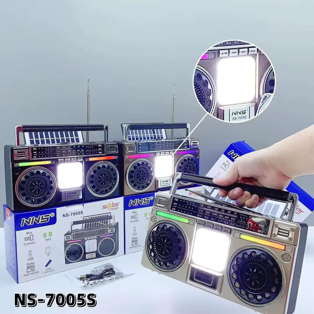 FUTURKART New Retro Solar Blue Tooth Speaker with LED Lights – Portable Bluetooth Speaker, TF/USB/FM/AM, 1200mAh Battery