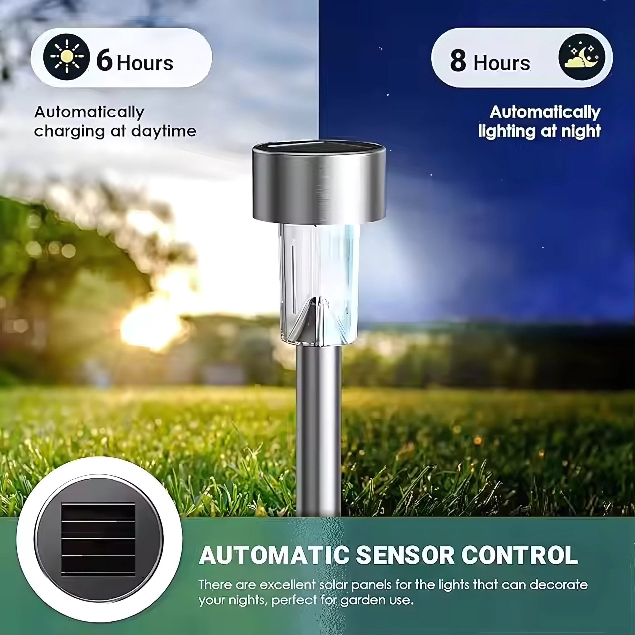 Stainless Steel Solar Stick Light – Mini LED Pathway Lamp for Patio and Garden(Pack of 10)